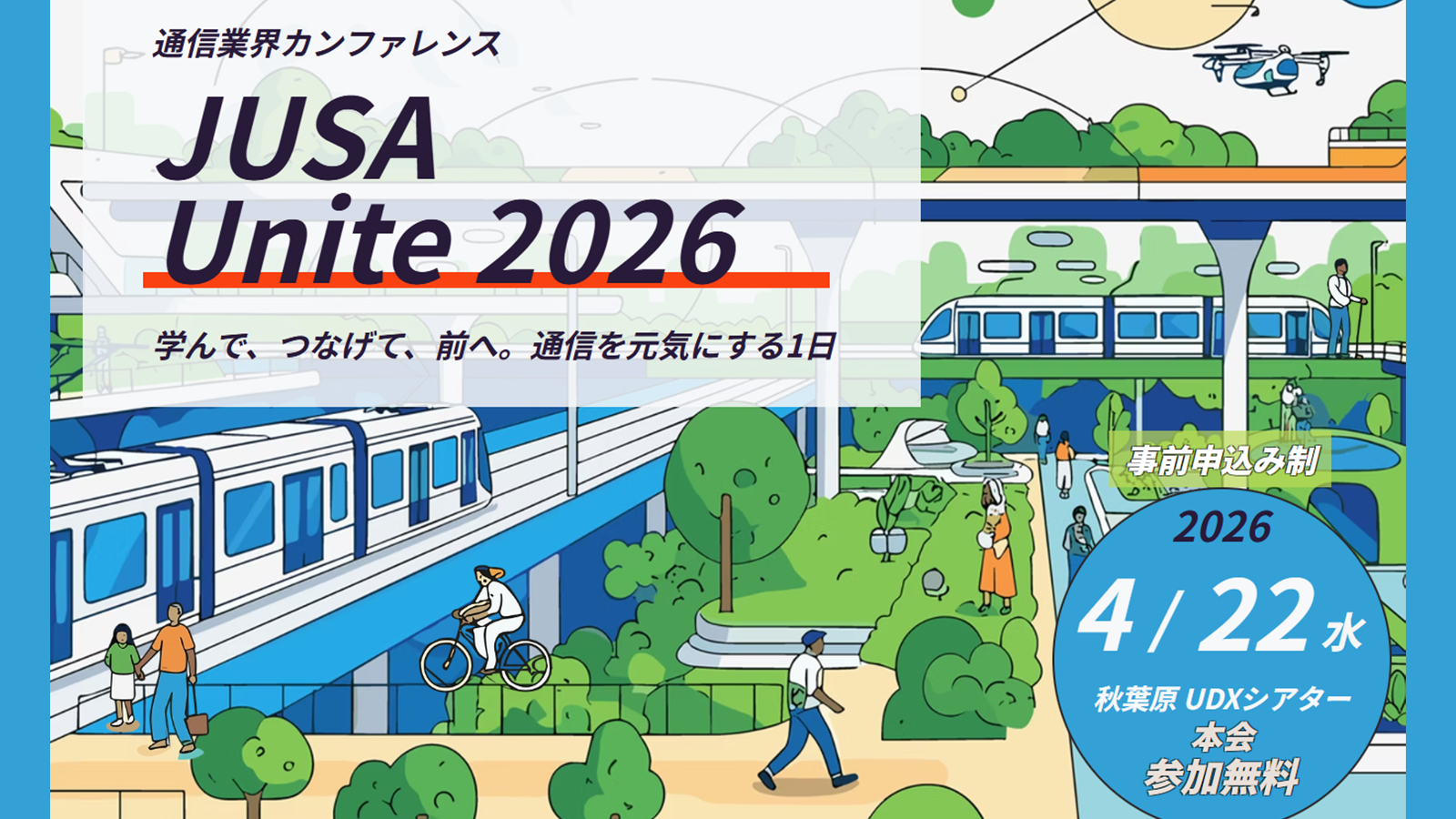 4月22日(水)に、一般社団法人 日本ユニファイド通信事業者協会様主催で開催される「JUSA Unite 2026」に弊社エバンジェリスト高橋とアカウントセールス部の篠倉が登壇いたします。ぜひご来場ください。